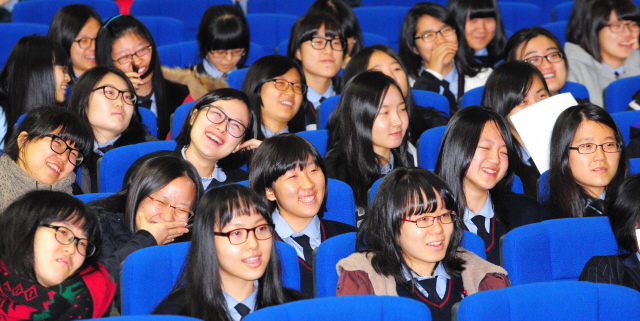 대한주부클럽연합회 전주·전북지회 소비자정보센터가 13일 도내 중·고교생을 대상으로 합리적인 소비를 유도하기 위한 소비자경제교육을 시작한 가운데, 전주 상산고 학생회관에서 학생들이 소비자정보센터 박민정 부장으로부터 교육을 받으며 환하게 웃고 있다. 청소년 소비자경제교육은 다음달 27일까지 55개 중·고등학교에서 실시될 예정이다.