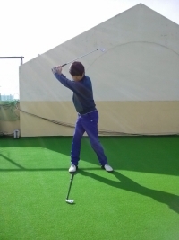 사진3은 두 번째 사진의 동작 후 클럽을 백스윙하듯이 잡아보는 것이다. 두 번째 동작에서 만들었던 회전과 몸동작을 완전하기 기억하려고 해야 한다. 평소에 자신이 만들어낸 탑스윙동작을 똑같이 하려고 하는 것이 키포인트이다.