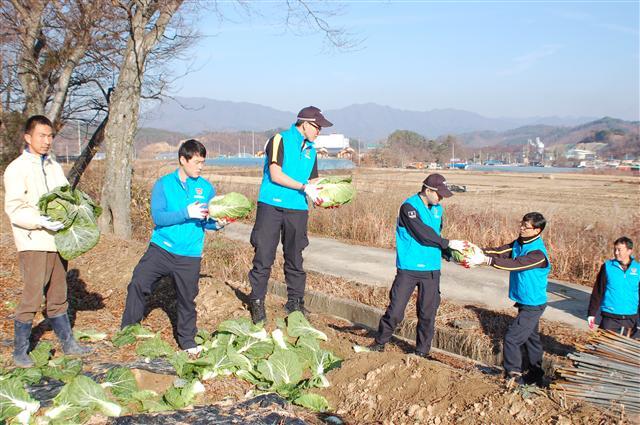 이들은 거동이 불편한 노인과 장애우가 생활하는 반월 노인 선교원 인근 밭에서 김장대비 배추 및 무우뽑기에 부족한 일손을 도왔다.