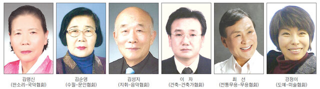 전북예술상은 전북예총이 매년 도내 문화예술계 발전에 기여한 공적이 큰 예술인들을 10개 협회와 9개 시·군예총의 추천을 받아 심사를 거쳐 선정해온 상. 상금 200만원과 상패를 받게 될 올해 수상자는 김명신(66·국악협회) 김순영(76·문인협회) 김성지(78·음악협회) 이 자(58·건축가협회) 최 선(77·무용협회) 강정이(51·미술협회)씨다.
