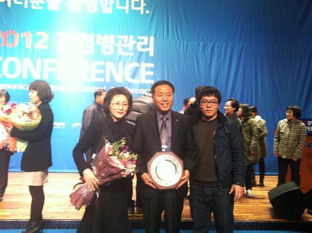 ▲ 진안군이 2012년 감염병 컨퍼런스 시상식에서 보건복지부 쯔쯔가무시증 집중예방관리사업 전국 최우수기관으로 선정된 가운데 관계자들이 기념촬영을 하고 있다.