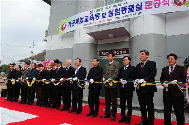 (재)고창복분자연구소(이사장 이강수 군수)는 28일 복분자의 기능성 검증을 위한 세포실험 및 동물실험이 가능한 가공체험교육동과 효능평가센터 실험동물실 준공식을 개최했다.