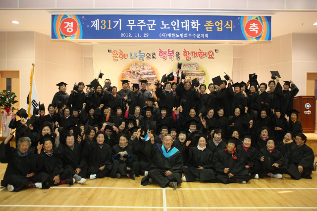 졸업식은 대한노인회 무주군지회 주관으로 열렸으며 김창치 총학생회장과 성복수(무주읍)학생장, 변수남(적상면)학생장, 한갑수(안성면)학생장, 차분예(부남)학생장 등 5명이 노인대학 운영에 기여한 공로를 인정받아 표창을 받았다. 이날 과정을 마친 제31기 노인대학은 지난 5월부터 관내 거주 65세 이상 노인들을 대상으로 건강강좌와 교양강좌, 취미활동 등에 관한 내용으로 진행됐으며, 재학생 110명 전원이 졸업의 결실을 거뒀다.