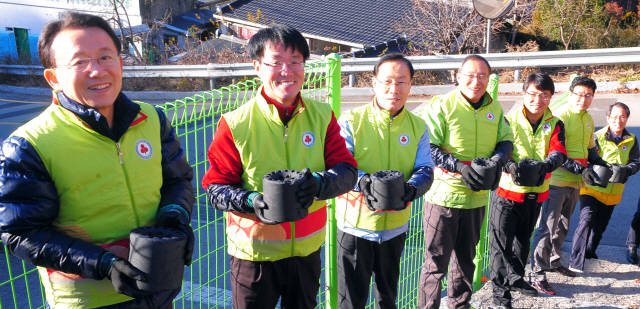 29일 전주시 교동에서 김완주도지사와 도청 공무원들이 사랑의 연탄 배달을 하고 있다.