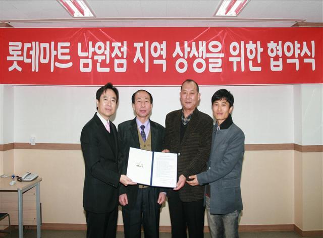 롯데마트 남원점은 용남시장, 공설시장, 전북남원수퍼마켓사업협동조합, 중소기업청 관계자와 지난달 27일 남원중소유통물류센터에서 자율 상생협약을 체결했다고 3일 밝혔다.