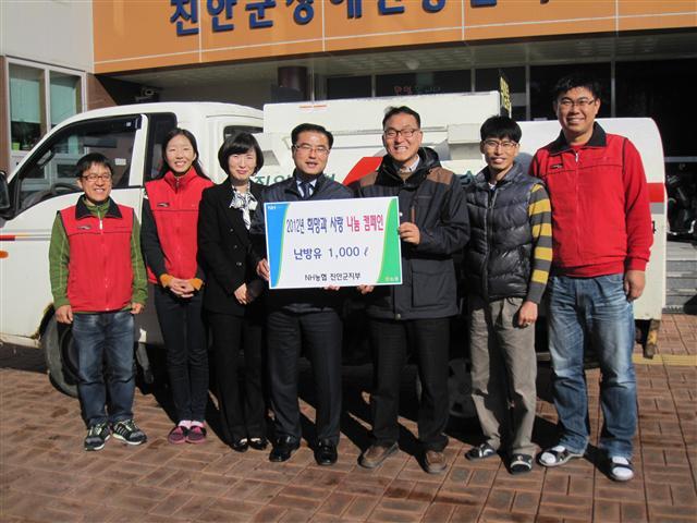 NH농협 진안군지부(지부장 김상수)는 계속되는 경기 침체로 어려움을 겪고 있는 이웃과 함께하고자 지난 4일 '희망과 사랑나눔 캠페인'의 일환으로 난방유 1000ℓ를 진안군 장애인 종합복지관을 통해 전달했다.