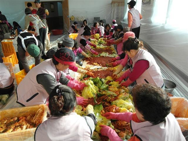 변산공동체와 35사단 1대대, 8351공군부대, 해당화로타리, 농가주부모임, 생활개선회 등 자원봉사자들 및 후원인들이 김장김치 담그기 자원봉사에 나섰기 때문이다.
