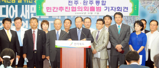 전주·완주 통합여부를 놓고 찬반논란이 팽팽히 맞섰던 지난 2009년 9월말, 갑작스럽게 '주민여론조사에서 70~80% 이상 찬성해야 주민투표가 가능하다'는 주장이 제기됐다.