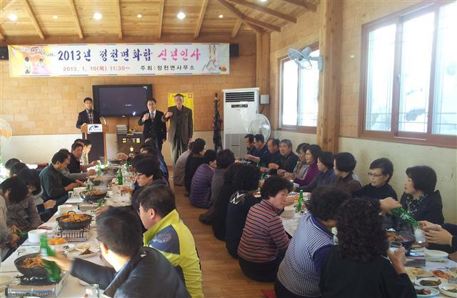 진안 정천면은 10일 유관 기관단체장 모임인 지역발전협의회원들을 비롯한 각 마을을 대표하는 이장단과 부녀회장단 등 100여명이 참석한 가운데 2013 신년 인사회를 가졌다.