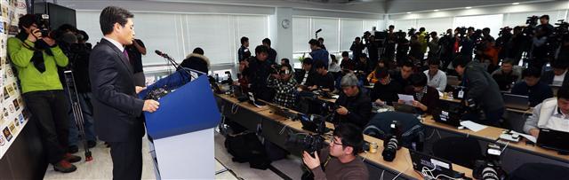 ▲ 양해영 한국야구위원회(KBO) 사무총장이 11일 오전 서울 강남구 도곡동 야구회관에서 열린 이사회가 끝나고 회의 결과를 발표하고 있다. 양해영 사무총장은 이날 "전날 22명 외부 평가위원들의 채점 총점 결과 개인별 점수로 볼 때 수원·KT쪽에 높은 점수를 준 위원이 많았다"고 밝혔다. 연합뉴스