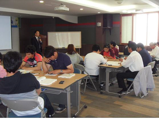 ▲ 부안농기센터에서 강소농 수강생들이 강의를 듣는 모습.