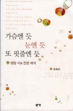 그러나 문학평론가 오하근씨(원광대 명예교수)에게 그간의 성과물들이 성이 차지 않는다. 오랫동안 영랑 시에 대한 연구작업을 하며 영랑 시 해석의 권위자로 통하는 그가 영랑 시 87편 전편에 대한 해석에 나선 이유다. 그가'가슴엔 듯 눈엔 듯 또 핏줄엔 듯'을 펴냈다(작가 출판).