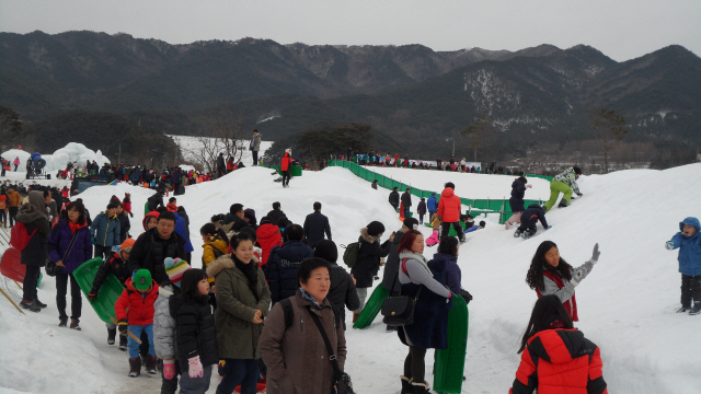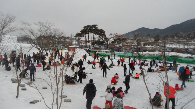 성인용 썰매장 외에도 길이 40m의 유아동 썰매장이 별도로 있어 가족 단위로 오는 관광객에게 안성맞춤이다. 눈썰매장 한 켠에는 호랑이, 사물놀이 하는 사람들과 같은 다양한 조형물도 배치돼 볼거리를 제공하고 있다.