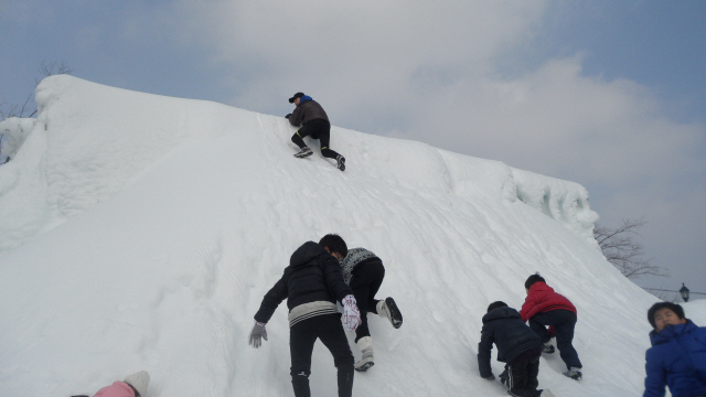 겨울축제의 필수 코스는 바로 눈썰매다. 모형으로 만들어진 뽀로로와 그 친구들이 반기는 행사장 입구를 지나면 썰매장을 마주한다. 바래봉 눈꽃 축제장에는 눈썰매, 얼음썰매, 빙벽체험장, 눈 조형물 전시, 대규모 눈싸움 대회 등 각종 체험 행사가 마련돼 있다. 6000원(단체 4000원)의 입장료를 내면 오전 10시부터 오후 4시까지 겨울 레포츠를 만끽할 수 있다.