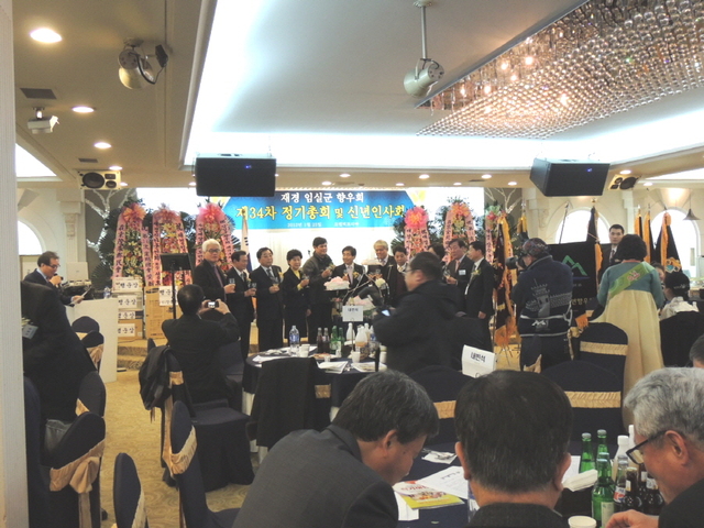 고향을 떠난 향우들의 한마당 잔치인 제 34차 재경임실군향우회 정기총회 및 신년인사회가 25일 서울 빅토리아호텔 사파이어홀에서 성황리에 열렸다. 이날 총회에는 손정우 향우회장과 전북도민회 김대은 사무총장, 임실지역 12개 읍·면 회장단 등 향우회 회원 300여명이 참석했다. 〈사진〉