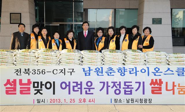 남원시 춘향라이온스클럽(회장 윤정옥)은 25일 오후 명절 이웃돕기에 동참하고자 사랑의 쌀을 남원시에 전달했다. 〈사진〉