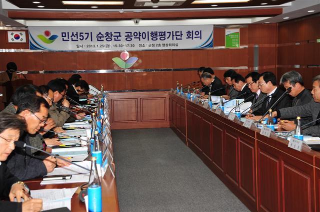 군에 따르면 지난 25일 군 영상회의실에 황숙주 군수를 비롯 평가위원 8명과 해당사업 소관 부서장 16명 등 30여명이 참석한 가운데 2012년 공약사업 이행 여부 등을 점검했다.