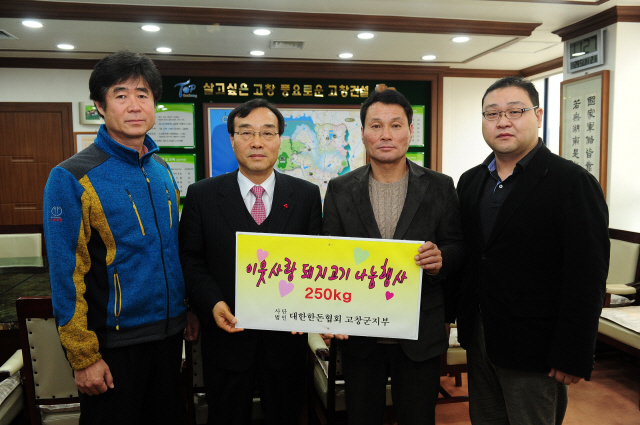 이강수 군수는 "불황과 돈육 가격이 하락하는 상황에서도 희망을 잃지 않고 나눔의 정신을 실천하는 대한한돈협회 고창군지부에 감사 드린다."고 인사를 전했다.