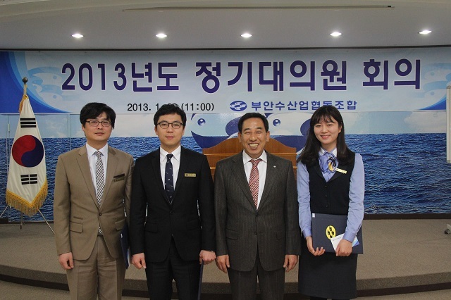 부안수협은 지난달 29일 조합 임직원 및 대의원 85명이 참석한 가운데 제51기 결산총회를 개최하여 우수직원 포상 및 임원협의회 장학금 전달식(2명 각50만원씩), 대의원협의회 장학금 전달식(4명 각 50만원씩)이 있었으며 조합원에 대한 출자배당 4%(3억2천6백만원), 이용고배당 1%(8천1백만원) 총 5%(4억7백만원)의 배당을 의결했다.