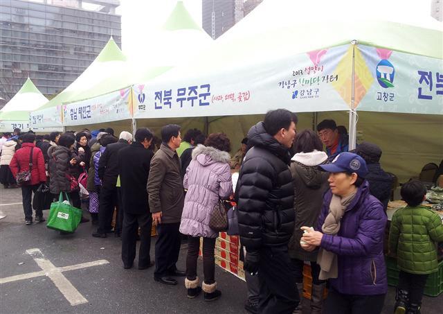 무주군은 설 맞이 직거래 장터를 위해 각 기관을 대상으로 반딧불 농·특산물을 사전 홍보해 주문을 받았으며 현장에서는 직접배달 등의 다양한 고객맞춤 서비스를 펼쳐 고객만족을 실천했다.