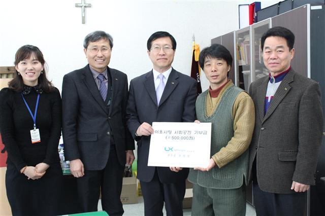 이날 윤형섭 전북본부장과 임혁규 정읍지사장을 비롯한 직원들은 정읍시 신태인에 위치한 북부노인복지관(관장 이도형)을 찾아 노인어르신들을 위로하고 불우이웃돕기 성금 50만원을 기탁했다.