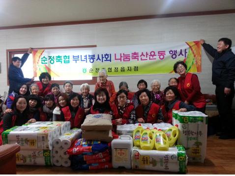 순정축협 부녀봉사회는 2007년부터 매년 꾸준한 봉사활동(연 6회)을 실시하며 연말 김장김치 나누기행사, 나눔축산운동(쇠고기 나눔운동)등 소외된 계층에 이웃사랑을 실천하고 있다.