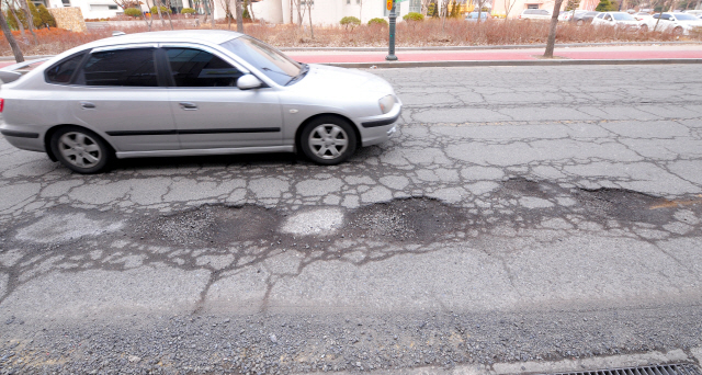 12일 전북대학교 구정문 인근 도로 곳곳이 움푹 패여 있어 운전자들의 안전을 위협하고 있다.