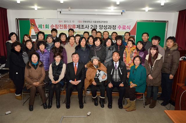 ▲ 순창전통장류제조사 제2급 자격시험 합격자들이 기념촬영을 하고 있다.
