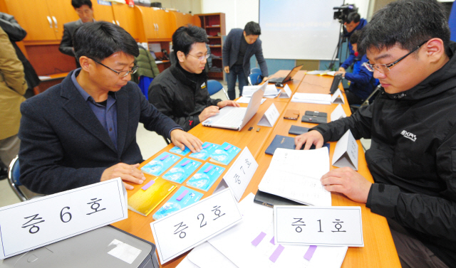 ▲ 6일 해외 금광 및 광산 개발 사업에 투자하면 고수익이 보장된다고 속여 백억원대를 가로 챈 일당을 검거한 전북지방경찰청 사이버수사대가 압수품을 공개 하고 있다. 이강민기자 lgm19740@
