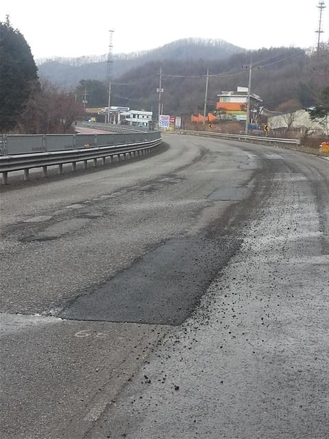 2차로를 중심으로 5cm 안팎의 구덩이 아닌 구멍이 숱하고, 패인 노면은 급히 땜질한 흔적이 완연했다.
