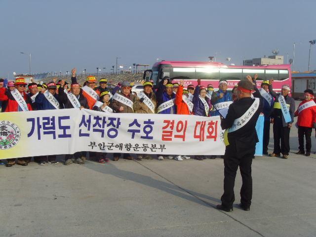부안군애향운동본부가 12일 가력선착장을 조성 목적에 맞게 사용하도록 보장해 줄 것을 촉구하는"가력선착장 수호결의문"을 회원 100여명이 참여한가운데 가력선착장에서 발표했다. 이날 결의문을 통해 "어민들의 건의에 따라 새만금사업 대체어항으로 비응, 신시, 가력 3개 어항을 건설한 이후 군산 어민은 비응항과 신시항을, 부안·김제어민은 가력항을 주로 사용하고 있다" 설명했다.