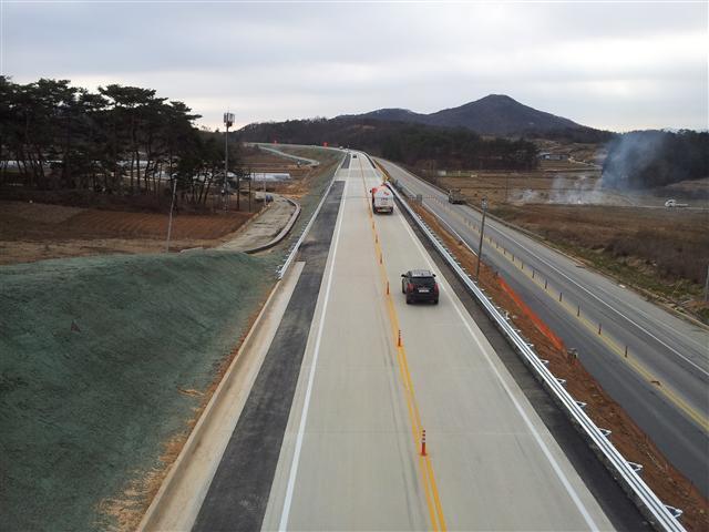 13일 담양-성산 간 1공구 시공을 맡고 있는 쌍용건설(주) 관계자에 따르면 지난 2008년 12월에 착공해 약 4년간의 공사 과정을 거쳐 지난 12일 공사 구간 시점에서부터 아미산 입구까지 약 3km 구간에 대해 새롭게 시공한 차선으로 교통을 전환했다.