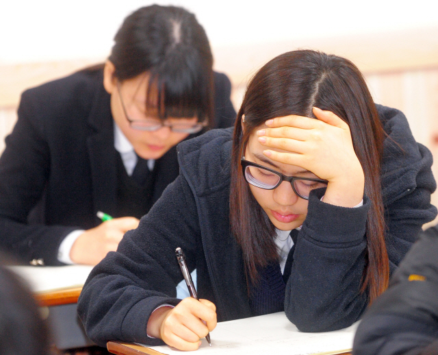 2013년도 전국연합학력평가가 실시된 13일 전주한일고등학교 3학년 학생이 신중하게 문제를 풀고 있다.
