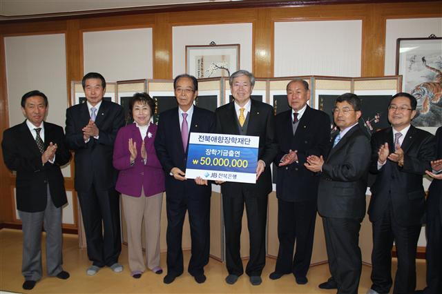 전북은행은 1992년 전북애향장학재단 설립 이후 20년이 넘게 매년 5000만원씩 총 11억원을 기탁했다.