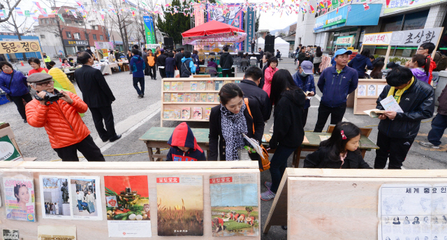 ▲ 전주 동문예술거리 페스타행사가 지난 31일 열린 가운데 예술벼룩장터에서 많은 시민들이 '복고 낭만 풍경전'을 감상하고 있다. 추성수기자chss78@
