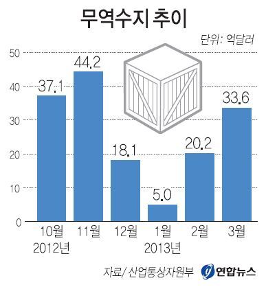 특히 엔저 현상에 따른 가격 경쟁력 악화 우려 속에 일본으로의 수출액은 작년 3월에 비해 18%나 줄었다.