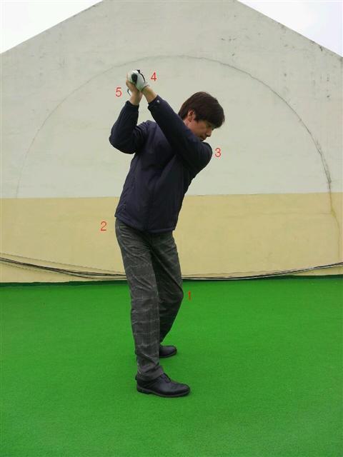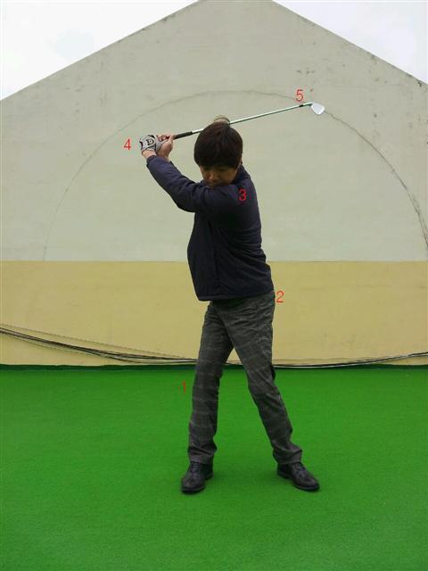키네마틱 순서의 흐름은 사진에서 확인할 수 있듯이 무릎, 허리, 어깨, 팔, 클럽으로 연결된다.