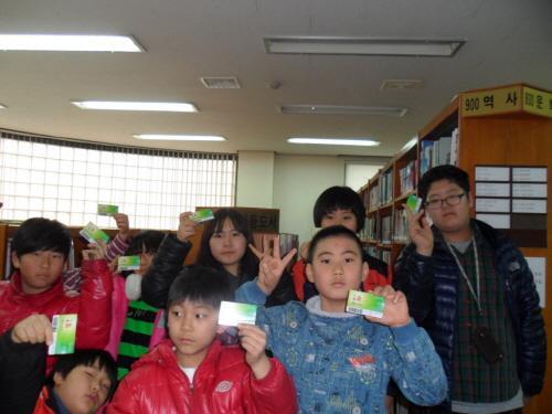 ▲ 부안군립도서관에서 어린이들이 전국 도서관을 이용할 수 있는 회원증을 들어보이고 있다.