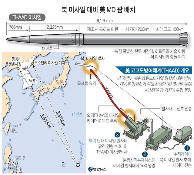 국방부는 이날 성명에서 "몇주일 내에 고고도방어체계(THAAD)를 괌에 배치할 것"이라면서 "이는 북한의 탄도미사일 위협에 대한 방어 태세를 강화하기 위한 예방적 조치"라고 설명했다.
