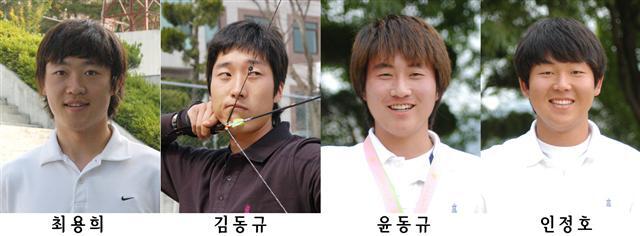 윤동규 선수는 이미 1학년때 2011 유니버시아드대회 국가대표로 출전한 경험이 있고, 인정호 선수도 국내의 수많은 대회에서 금메달을 획득한 바 있다. 졸업생 최용희 선수는 대학 재학시절 각종 전국대회에서 금메달을 휩쓴 것은 물론, 2003 하계 U대회 단체전 우승과 2004 세계대학양궁선수권대회 단체전 및 개인전 우승, 2005 하계 U대회 단체전 우승의 주역으로 활동했다.