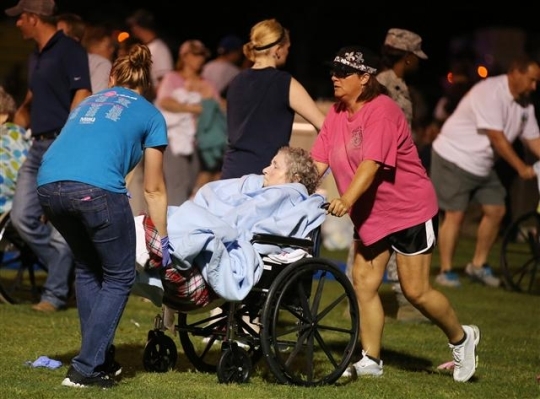 ▲ 17일(현지시간) 미국 텍사스주 웨이코의 비료공장에서 폭발사고가 발생, 150여명이 다친 것으로 알려졌다. 비료공장 폭발 직후 주민들이 인근 학교로 대피하고 있다. 연합뉴스
