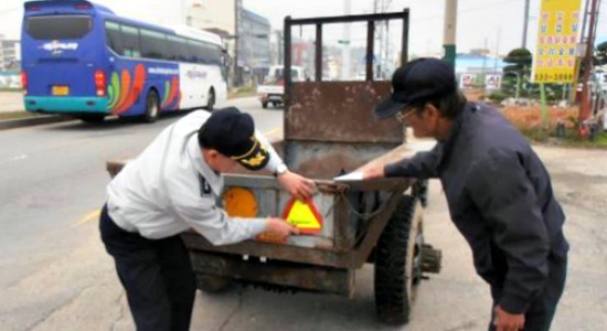 농소파출소에 따르면 봄철 행락차량 운행이 잦은 지리적 특성에 따라 일출 전, 일몰 후 상시 도로를 이용하는 경운기, 전동휠체어, 손수레, 자전거 등 농기계 운전자의 차량에 야광반사필름 부착활동을 펼치고 있다.