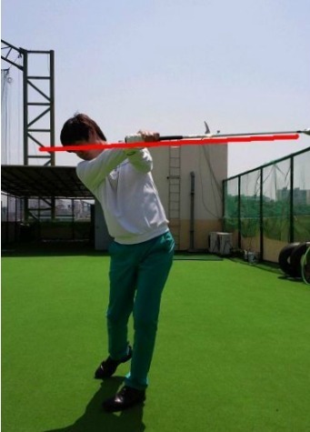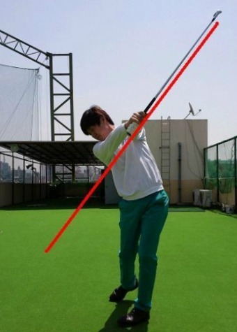 사진2는 스윙 플레 인에서 많이 벗어난 동작으로 좋은 결과를 기대하기 어려워진다. 또한 손목을 많이 사용하여 인사이드 아웃으로 밀어치는 동작이 쉽게 나오게 되는데, 이는 슬라이스 구질을 만들어 낸다. 클럽의 페이스가 열리면 악성 슬라이스가 난다.