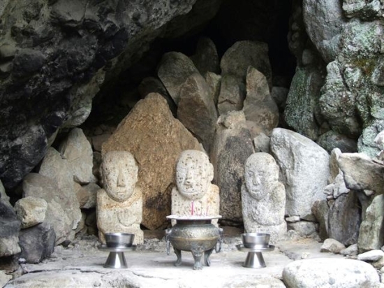 삼존불(三尊佛) 형태의 이 석불상이 봉안된 곳은 영험한 도량으로 널리 알려진 진안 마이산 탑사 미륵단.