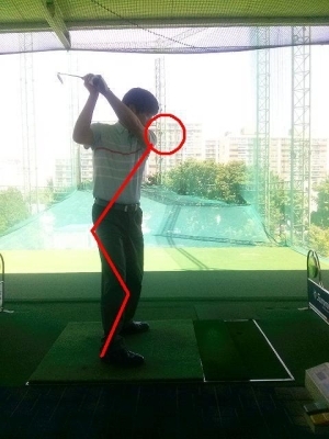 아마추어선수들은 백스윙 시작부터 사진3과 같이 상체를 일의 킨다. 이것이 로스 오프 포스쳐이다.