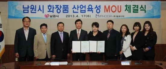 △4개업체와 MOU 체결= 남원시는 빠르면 6월부터 화장품 집적화 단지의 분양을 실시한다는 계획이다.
