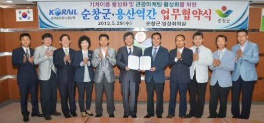 순창군이 코레일을 이용한 농촌관광 활성화를 위해 29일 군청 영상회의실에서 한국철도공사 용산역과 업무 협약을 체결함에따라 관광 마케팅에 새로운 청신호가 켜졌다.