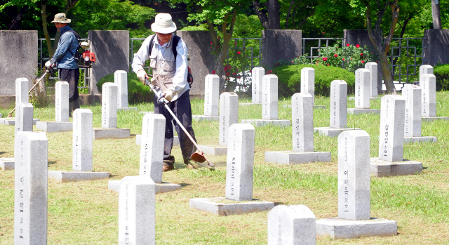 6월 호국보훈의 달을 앞두고 30일 전주 군경묘지에서 환경 정화 작업을 하고 있다.