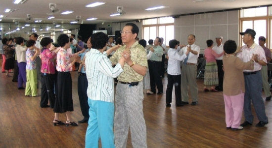 ▲ 댄스스포츠를 배우고 있는 노인들.