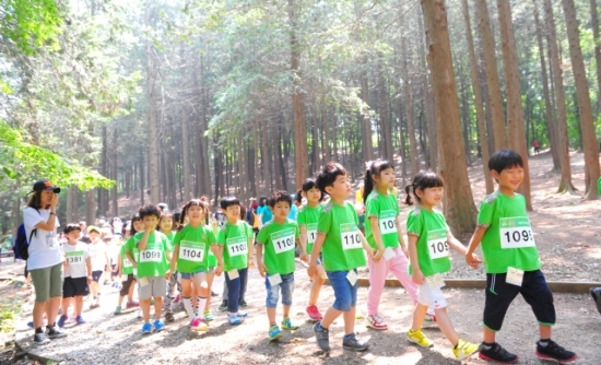 5일 전주 건지산에서 열린 제2회 건숲오 어린이 마라톤대회에서 아이들이 손에 손을 잡고 걷고 있다.